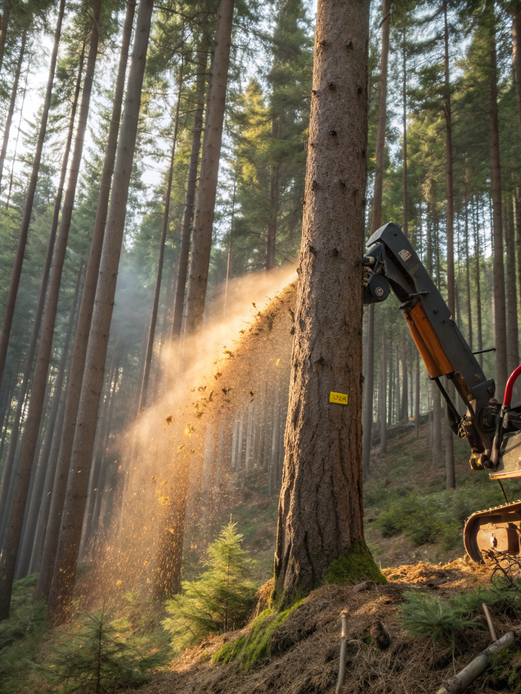 Vertical view of the forestry mulcher taking down a 10-inch pine.